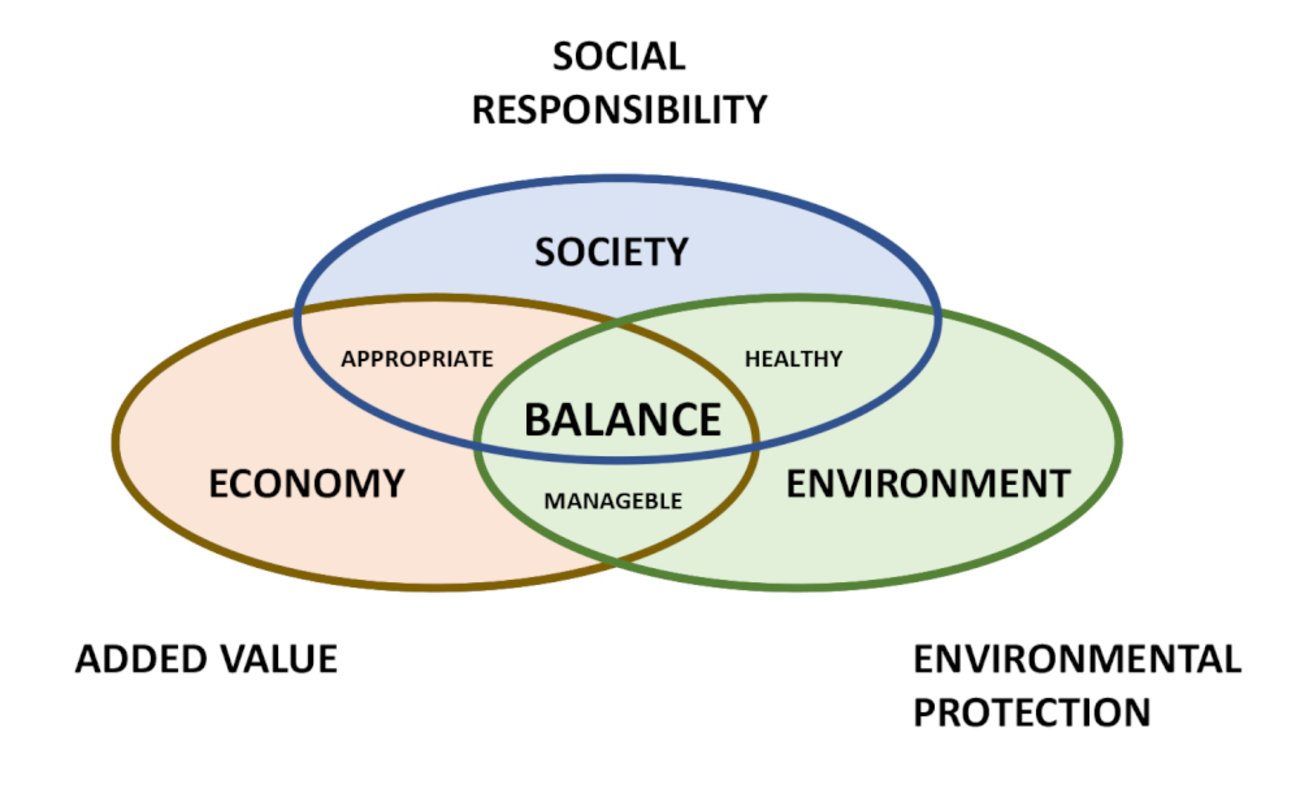 The company's policy is illustrated in a sketch that comprise three basic principles: profitable growth, environmental protection and social responsibility. Each intersection of two basic principles represents different qualities of performance. At the intersection of all three is the goal of social policy, which is balance at all levels of action, both externally and within CCE.